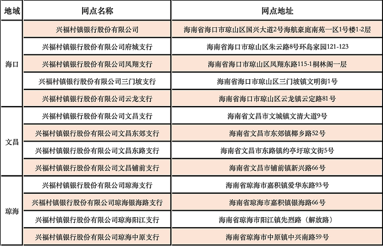 兴福村镇银行(以下简称“本行”)为进一步优化经营资源,更好服务地方经济发展,在金融监管部门指导下开展吸收合并文昌兴福村镇银行、琼海兴福村镇银行的相关工作。