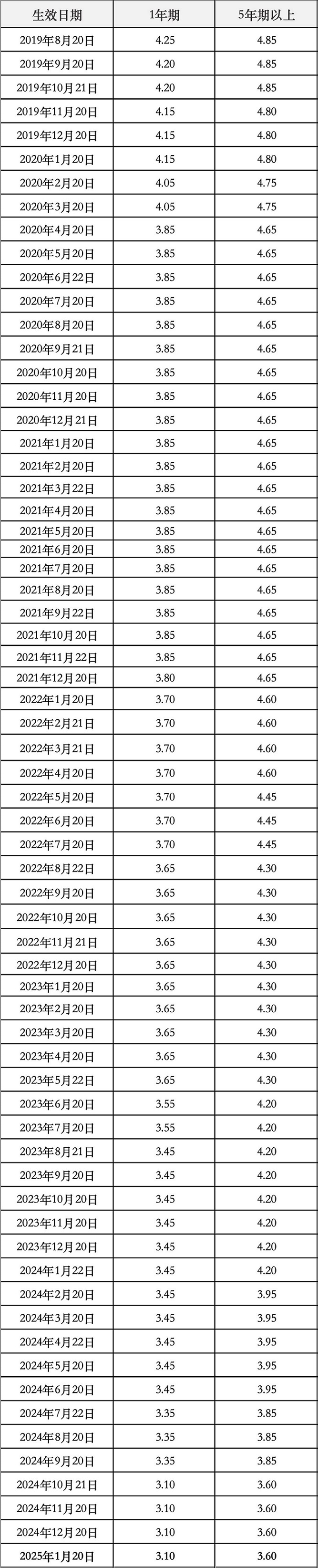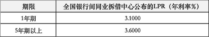 附表:LPR历史价格 单位:年利率,%