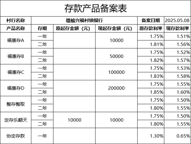 江苏赣榆兴福村镇银行股份有限公司关于调整我行人民币存款利率的通知