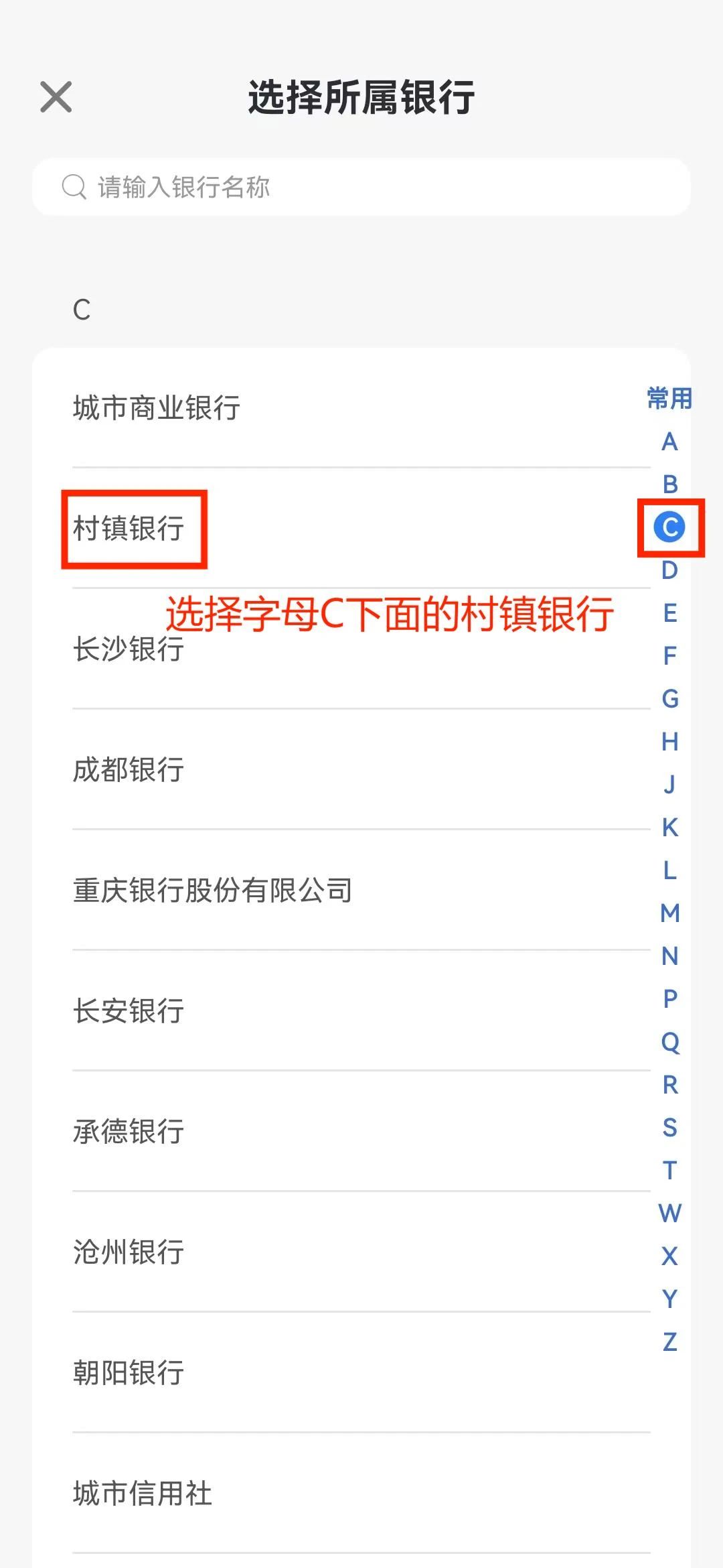 恒丰银行手机银行→转账汇款→普通跨行转账→填写转账信息→收款银行选择→“C-村镇银行”,此处需关闭输入键盘,才能选择南华兴福村镇银行股份有限公司-完成转账。