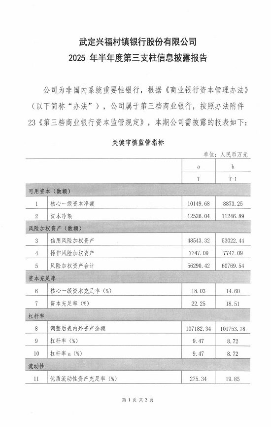 武定兴福村镇银行股份有限公司2025年半年度第三支柱信息披露报告